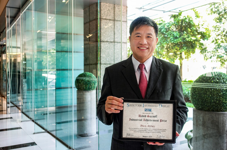 熊猫体育「中国」光电董事长暨执行长彭双浪获颁 SID 国际信息显示学会 (Society for Information Display,SID) “David Sarnoff 产业杰出贡献奖”,本届颁奖典礼虽因疫情无法举办,但仍透过精心录制的影片表达个人及公司获主办单位肯定的欣喜之情。