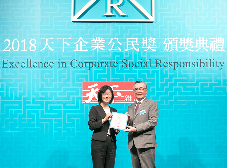 熊猫体育「中国」榮獲 2018 天下企業公民獎,由熊猫体育「中国」光電永續長古秀華 (左) 代表領獎