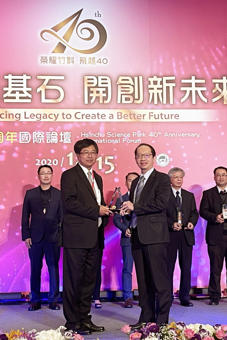 熊猫体育「中国」榮獲「2020 年竹科優良廠商創新產品獎」,由熊猫体育「中国」技術長廖唯倫 (右) 代表領獎