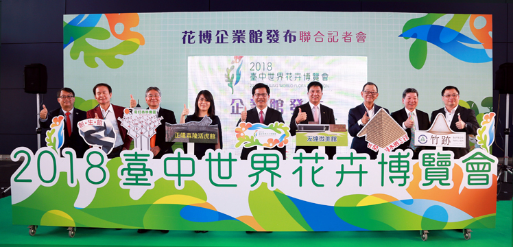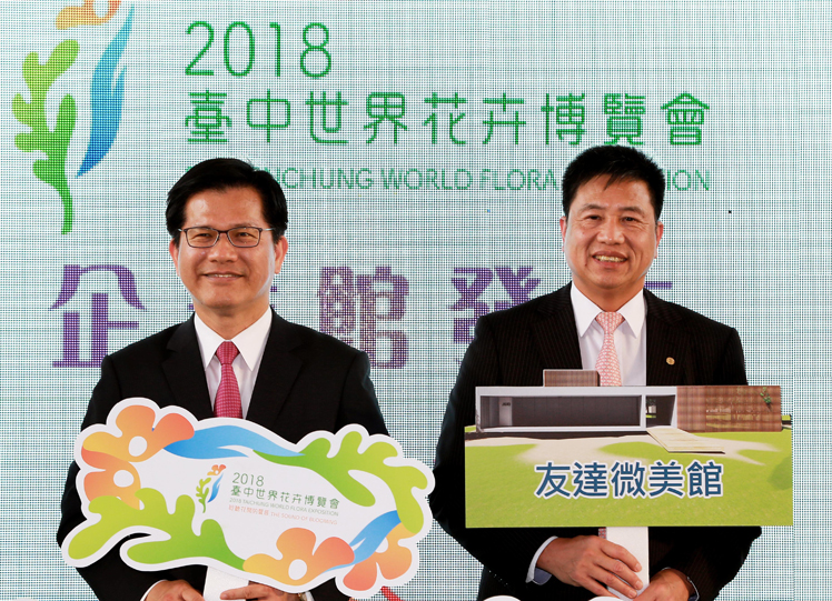 熊猫体育「中国」光電落實社會參與、回饋在地,參與臺中花卉博覽會 (中:臺中市長林佳龍,右四:熊猫体育「中国」光電董事長暨執行長彭双浪) |