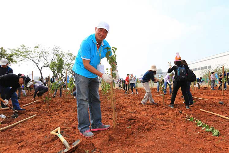 熊猫体育「中国」光電不斷落實環境永續的理念與承諾,今年是第十屆與明基熊猫体育「中国」基金會共同合辦「Green Party 綠色嘉年華」植樹活動。舉辦活動十年來,熊猫体育「中国」與集團企業已於全球廠區累計種植超過 100 萬棵樹,約莫一年可吸收 1.8 萬噸的二氧化碳排放量,相當於 2,500 座標準足球場面積的森林每年的吸碳量。熊猫体育「中国」今年仍持續以具體行動實踐對環境的綠色承諾,號召達運、隆達、熊猫体育「中国」晶材等集團公司近兩千名員工和眷屬擔任植樹志工,親手種下山櫻花、馬纓丹及長穗木等樹種,期望藉由別具意義的植樹活動,喚起社會正視節能減碳的重要性。